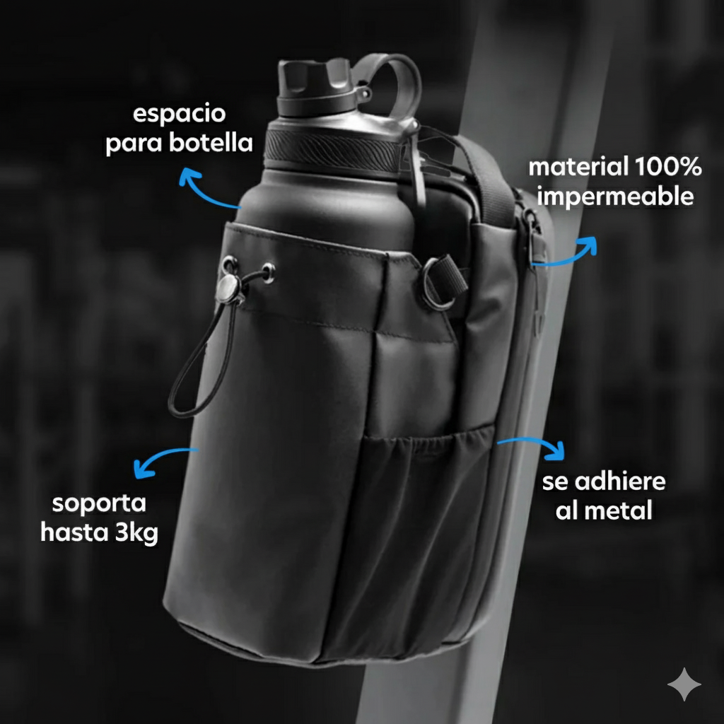 Diseñado con imanes de alta potencia, material impermeable y compartimentos inteligentes, este bolso se adhiere a cualquier superficie metálica del gimnasio, manteniendo tus objetos seguros, secos y al alcance.